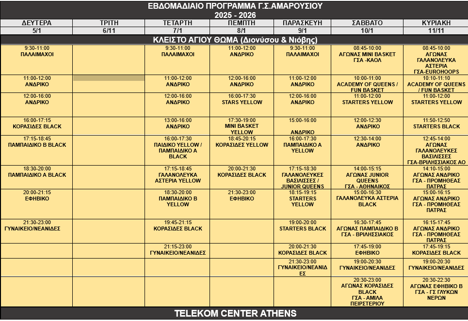 Εβδομαδιαίο Πρόγραμμα 05-11/01/2026