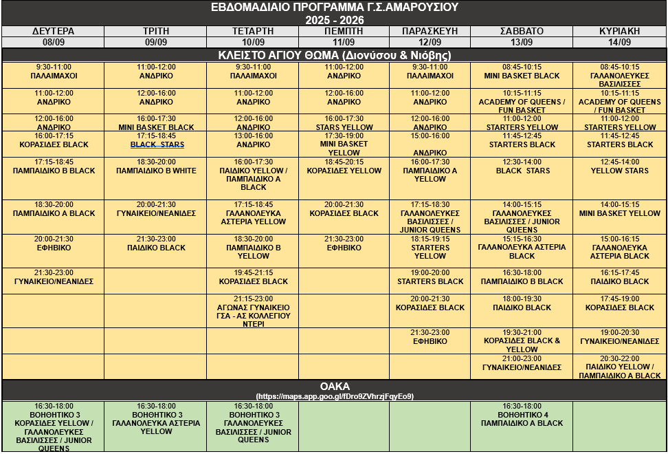 Εβδομαδιαίο Πρόγραμμα 08-14/09/2025 ΜΠΑΣΚΕΤΠΡΟΓΡΑΜΜΑ 8 Σεπτεμβρίου 2025 FacebookTwitterPinterestWhatsApp Προηγούμενο άρθροΕβδομαδιαίο Πρόγραμμα 01-07/09/2025Επόμενο άρθροΕβδομαδιαίο Πρόγραμμα 15-21/09/2025 ΤΕΛΕΥΤΑΙΑ ΝΕΑ Δυναμική παρουσία του Γ.Σ. Αμαρουσίου στα Λιοφίλεια 2025 – Πανελλήνιο και Βαλκανικό ρεκόρ από τη Στεφανιδάκη Πρεμιέρα Β’ Γύρου με εκτός έδρας νίκη για τις Κορασίδες του Γ.Σ. Αμαρουσίου Γ.Σ. Αμαρουσίου: Δρομολογείται ένα διαχρονικό αίτημα για το νέο γήπεδο ποδοσφαίρου Μαρούσι πρωταθλητισμού: 2-0 επί του Φωστήρα Καισαριανής Εβδομαδιαίο Πρόγραμμα 15-21/12/2025