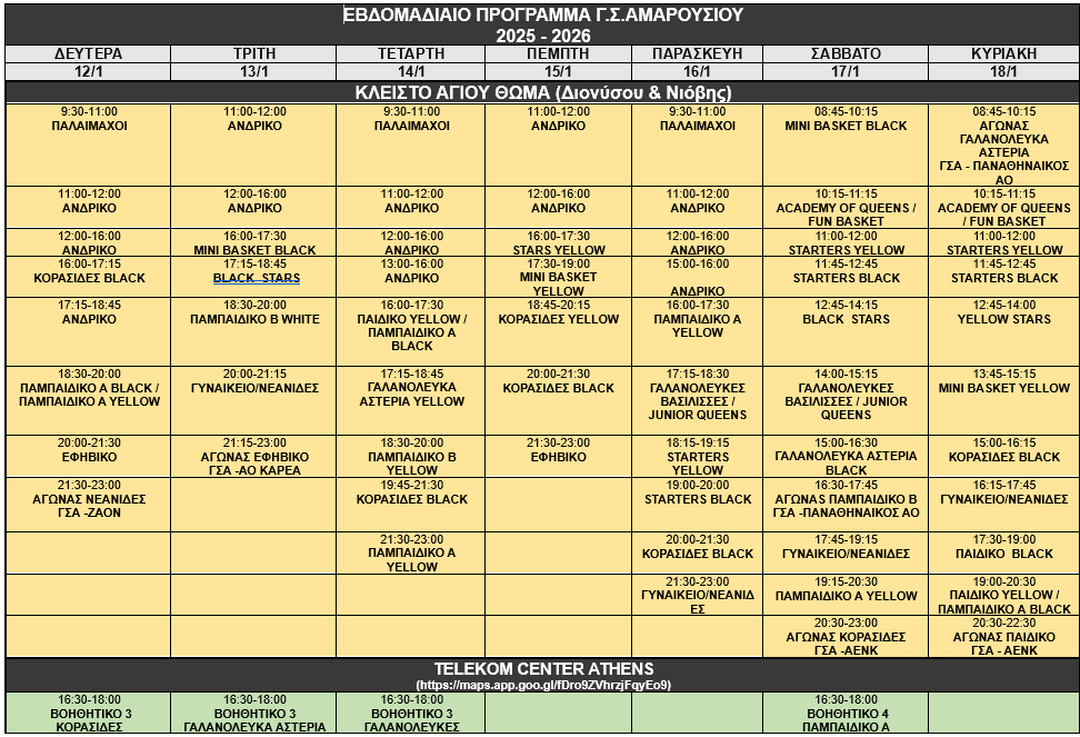 Εβδομαδιαίο Πρόγραμμα 12-18/01/2026 ΜΠΑΣΚΕΤΠΡΟΓΡΑΜΜΑ 15 Ιανουαρίου 2026 FacebookTwitterPinterestWhatsApp Προηγούμενο άρθροΕβδομαδιαίο Πρόγραμμα 05-11/01/2026Επόμενο άρθροΚοπή Πρωτοχρονιάτικης Πίτας 2026 – Πρόσκληση ΤΕΛΕΥΤΑΙΑ ΝΕΑ Άγιοι Ανάργυροι – Μαρούσι 0-0: Ντέρμπι χωρίς νικητή, με ένταση και μεγάλες φάσεις! Δυναμική παρουσία του Γ.Σ. Αμαρουσίου στο Περιφερειακό Πρωτάθλημα Ανωμάλου Δρόμου (ΕΑΣ ΣΕΓΑΣ Αθήνας) Κοπή Πρωτοχρονιάτικης Πίτας 2026 – Πρόσκληση Εβδομαδιαίο Πρόγραμμα 05-11/01/2026 Εβδομαδιαίο Πρόγραμμα 29/12/2025 – 04/01/2026
