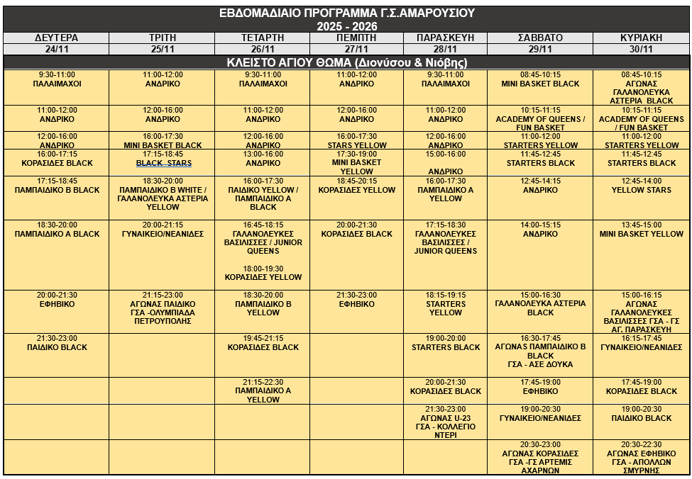 Εβδομαδιαίο Πρόγραμμα 24-30/11/2025 ΜΠΑΣΚΕΤΠΡΟΓΡΑΜΜΑ 24 Νοεμβρίου 2025 FacebookTwitterPinterestWhatsApp Προηγούμενο άρθροΜαχητική εμφάνιση των Κορασίδων Κ18 του Γ.Σ. Αμαρουσίου στην 7η αγωνιστικήΕπόμενο άρθροΚαθαρή νίκη για τις Κορασίδες του Γ.Σ. Αμαρουσίου: 0–3 τον Πανελλήνιο Γ.Σ. ΤΕΛΕΥΤΑΙΑ ΝΕΑ Δυναμική παρουσία του Γ.Σ. Αμαρουσίου στα Λιοφίλεια 2025 – Πανελλήνιο και Βαλκανικό ρεκόρ από τη Στεφανιδάκη Πρεμιέρα Β’ Γύρου με εκτός έδρας νίκη για τις Κορασίδες του Γ.Σ. Αμαρουσίου Γ.Σ. Αμαρουσίου: Δρομολογείται ένα διαχρονικό αίτημα για το νέο γήπεδο ποδοσφαίρου Μαρούσι πρωταθλητισμού: 2-0 επί του Φωστήρα Καισαριανής Εβδομαδιαίο Πρόγραμμα 15-21/12/2025