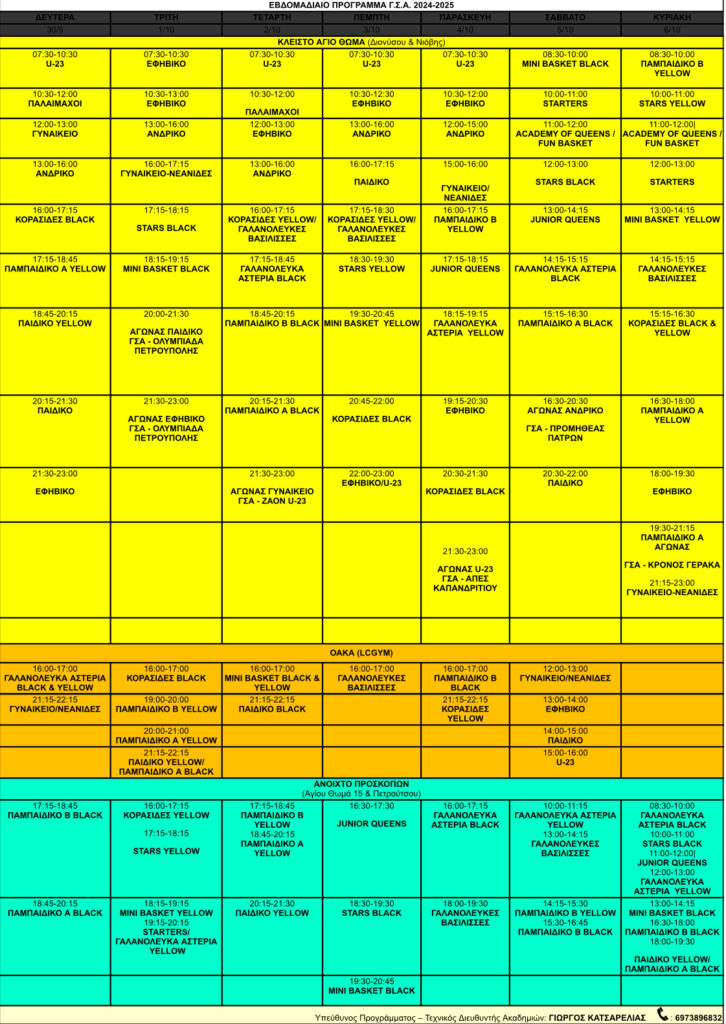 Εβδομαδιαίο Πρόγραμμα 30/09-06/10