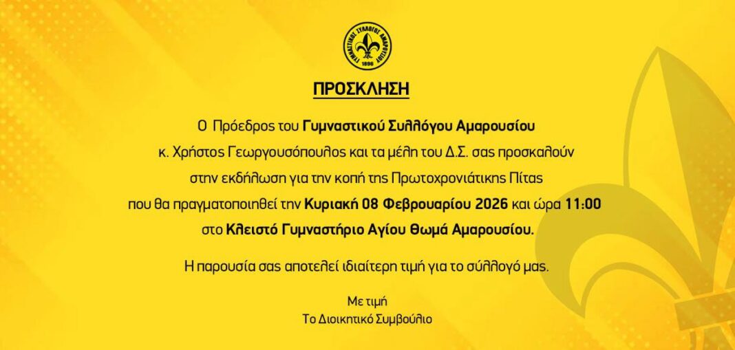 Ο Γυμναστικός Σύλλογος Αμαρουσίου σας προσκαλεί στην εκδήλωση για την κοπή της Πρωτοχρονιάτικης Πίτας.